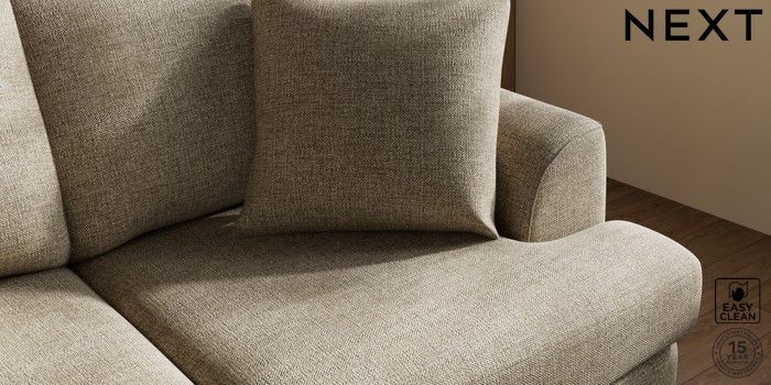 7.3.1 Buy Parker 3 Seater Small Sofa Woven Chenille Easy Clean Mid Natural High Metal - Black from the Next UK online shop Click here to use our accessible website