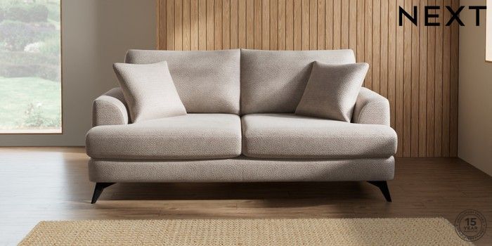 7.2.5 Buy Parker 3 Seater Sofa Boucle Chenille Light Natural High Metal - Black from the Next UK online shop Click here to use our accessible website
