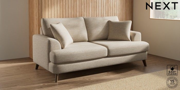 7.3.1 Buy Parker 3 Seater Sofa Boucle Weave Easy Clean Dark Natural Low Retro Tapered - Mid from the Next UK online shop Click here to use our accessible website