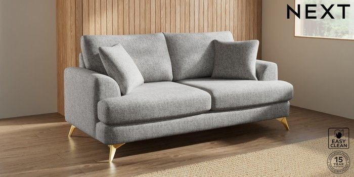 7.2.10 Buy Parker 3 Seater Sofa Chunky Boucle Easy Clean Light Grey High Metal - Brass from the Next UK online shop Click here to use our accessible website