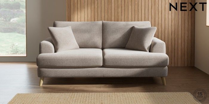 7.2.5 Buy Parker 3 Seater Sofa Chunky Chenille Light Dove Low Retro Tapered - Light from the Next UK online shop Click here to use our accessible website