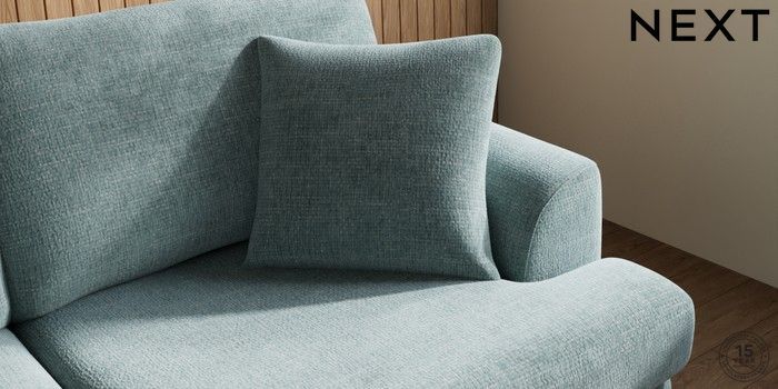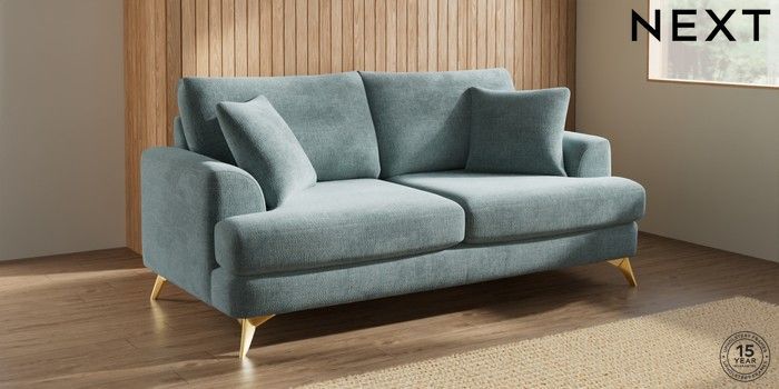 7.2.10 Buy Parker 3 Seater Sofa Chunky Chenille Light Teal Green High Metal - Brass from the Next UK online shop Click here to use our accessible website