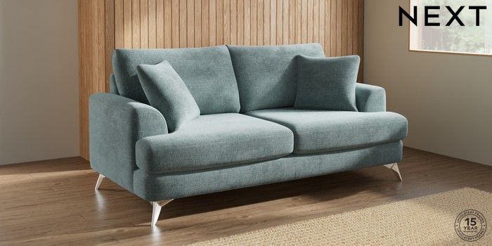 7.2.10 Buy Parker 3 Seater Sofa Chunky Chenille Light Teal Green High Metal - Chrome from the Next UK online shop Click here to use our accessible website