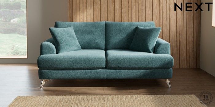 7.2.5 Buy Parker 3 Seater Sofa Chunky Chenille Mid Teal Green High Metal - Chrome from the Next UK online shop Click here to use our accessible website