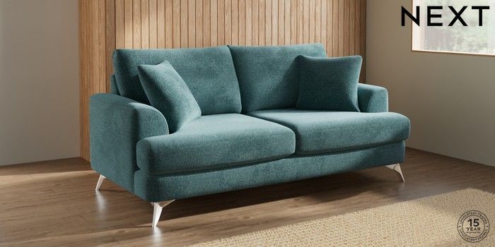 7.2.10 Buy Parker 3 Seater Sofa Chunky Chenille Mid Teal Green High Metal - Chrome from the Next UK online shop Click here to use our accessible website