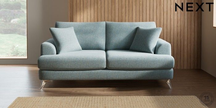 7.2.5 Buy Parker 3 Seater Sofa Chunky Marl Mid Blue High Metal - Chrome from the Next UK online shop Click here to use our accessible website