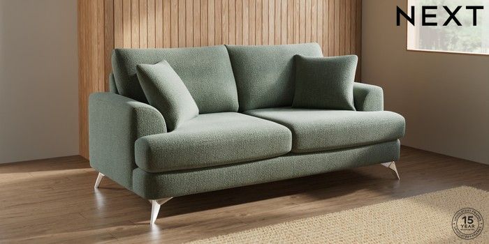 7.2.10 Buy Parker 3 Seater Sofa Chunky Texture Mid Forest Green High Metal - Chrome from the Next UK online shop Click here to use our accessible website