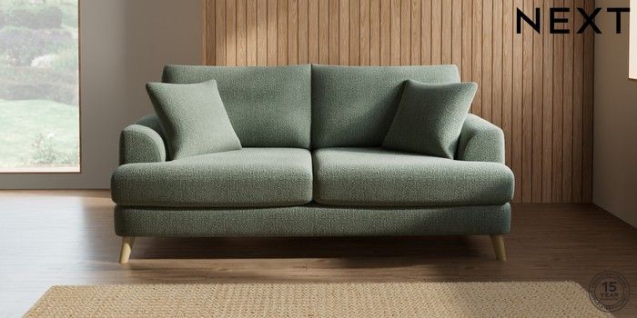 7.2.5 Buy Parker 3 Seater Sofa Chunky Texture Mid Forest Green Low Retro Tapered - Light from the Next UK online shop Click here to use our accessible website