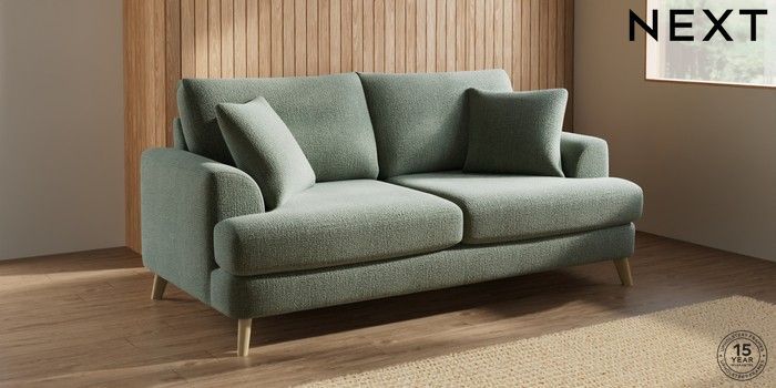 7.2.10 Buy Parker 3 Seater Sofa Chunky Texture Mid Forest Green Low Retro Tapered - Light from the Next UK online shop Click here to use our accessible website