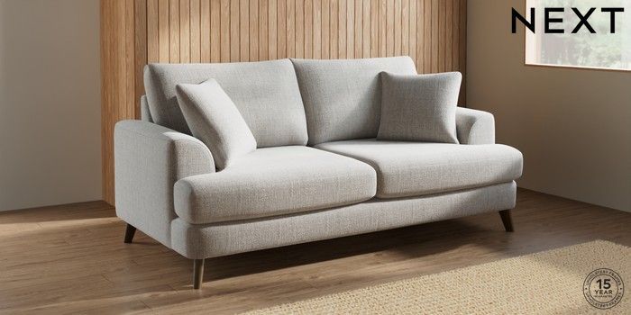 7.2.10 Buy Parker 3 Seater Sofa Chunky Weave Dove Grey Low Retro Tapered - Mid from the Next UK online shop Click here to use our accessible website