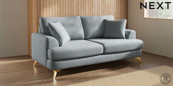 7.2.10 Buy Parker 3 Seater Sofa Chunky Weave Mid Blue High Metal - Brass from the Next UK online shop Click here to use our accessible website