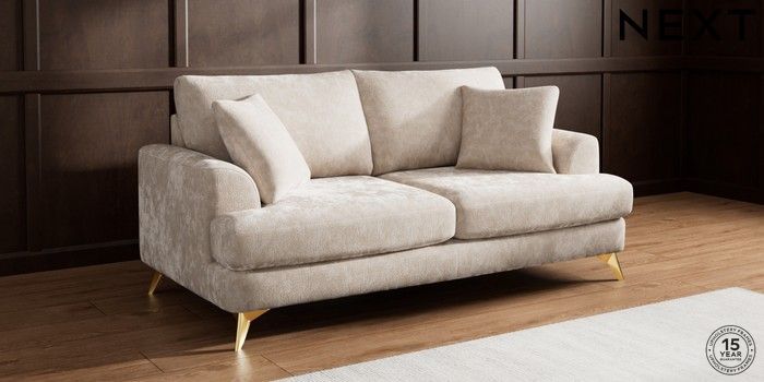 7.3.1 Buy Parker 3 Seater Sofa Distressed Velour Mid Natural High Metal - Brass from the Next UK online shop Click here to use our accessible website