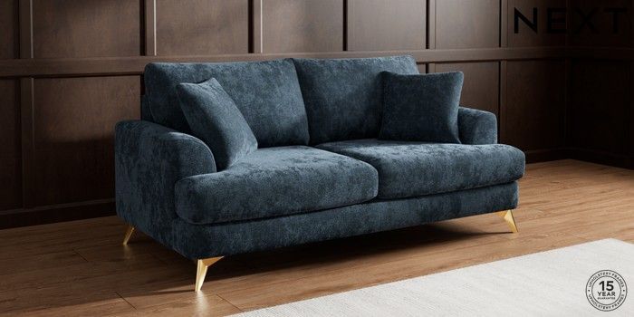 7.3.1 Buy Parker 3 Seater Sofa Distressed Velour Midnight Blue High Metal - Brass from the Next UK online shop Click here to use our accessible website