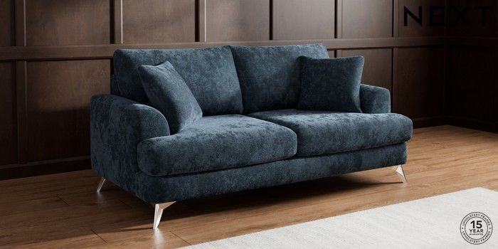 7.2.10 Buy Parker 3 Seater Sofa Distressed Velour Midnight Blue High Metal - Chrome from the Next UK online shop Click here to use our accessible website