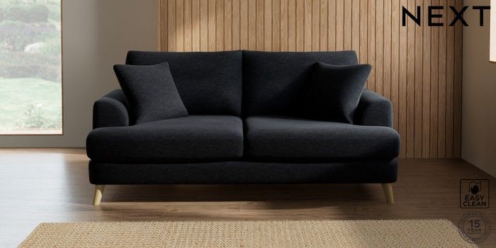 7.2.5 Buy Parker 3 Seater Sofa Fine Chenille Easy Clean Black Low Retro Tapered - Light from the Next UK online shop Click here to use our accessible website