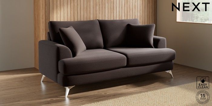7.2.10 Buy Parker 3 Seater Sofa Fine Chenille Easy Clean Chocolate Brown High Metal - Chrome from the Next UK online shop Click here to use our accessible website