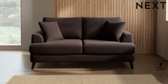 7.2.5 Buy Parker 3 Seater Sofa Fine Chenille Easy Clean Chocolate Brown Low Retro Tapered - Dark from the Next UK online shop Click here to use our accessible website