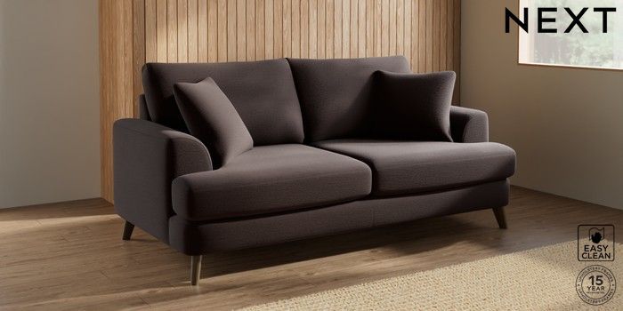 7.2.10 Buy Parker 3 Seater Sofa Fine Chenille Easy Clean Chocolate Brown Low Retro Tapered - Mid from the Next UK online shop Click here to use our accessible website