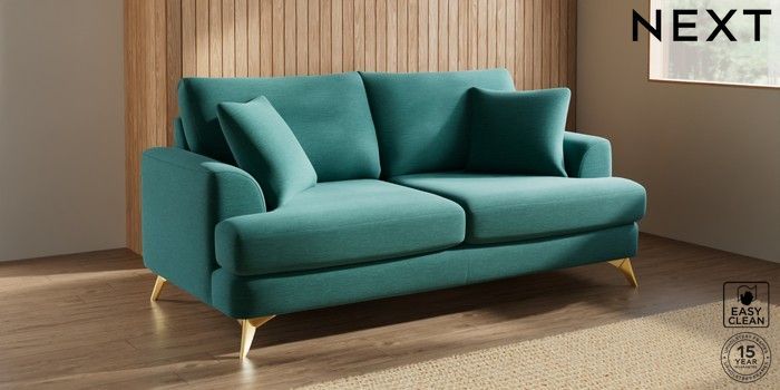 7.3.1 Buy Parker 3 Seater Sofa Fine Chenille Easy Clean Dark Juniper Green High Metal - Brass from the Next UK online shop Click here to use our accessible website