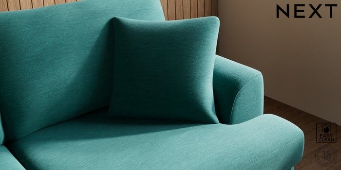 7.2.10 Buy Parker 3 Seater Sofa Fine Chenille Easy Clean Dark Juniper Green Low Retro Tapered - Light from the Next UK online shop Click here to use our accessible website