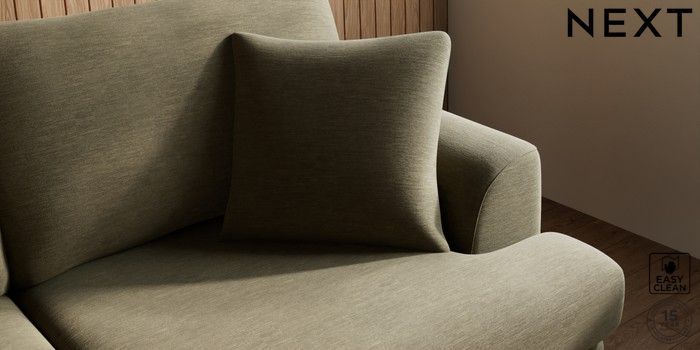 7.3.1 Buy Parker 3 Seater Sofa Fine Chenille Easy Clean Dark Moss Green High Metal - Black from the Next UK online shop Click here to use our accessible website