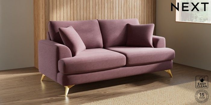 7.3.1 Buy Parker 3 Seater Sofa Fine Chenille Easy Clean Mid Mulberry Purple High Metal - Brass from the Next UK online shop Click here to use our accessible website