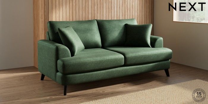 7.0.3 Buy Parker 3 Seater Sofa Luxe Chenille Dark Green Low Retro Tapered - Dark from the Next UK online shop Click here to use our accessible website