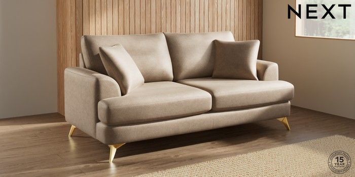 7.2.10 Buy Parker 3 Seater Sofa Luxe Chenille Mid Camel Beige High Metal - Brass from the Next UK online shop Click here to use our accessible website
