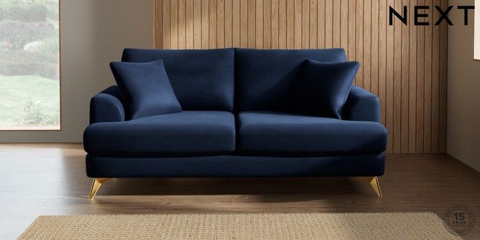 7.2.5 Buy Parker 3 Seater Sofa Luxe Chenille Navy Blue High Metal - Brass from the Next UK online shop Click here to use our accessible website