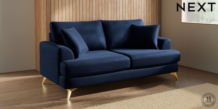 7.2.10 Buy Parker 3 Seater Sofa Luxe Chenille Navy Blue High Metal - Brass from the Next UK online shop Click here to use our accessible website