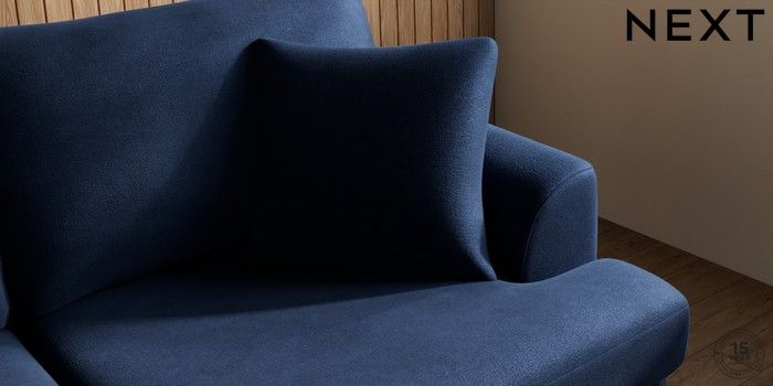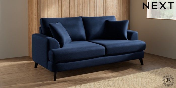 7.2.10 Buy Parker 3 Seater Sofa Luxe Chenille Navy Blue Low Retro Tapered - Dark from the Next UK online shop Click here to use our accessible website