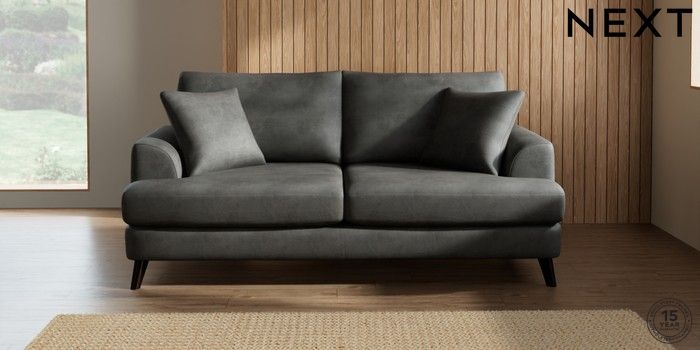 7.2.5 Buy Parker 3 Seater Sofa Monza Faux Leather Easy Clean Dark Grey Low Retro Tapered - Dark from the Next UK online shop Click here to use our accessible website