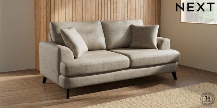 7.3.1 Buy Parker 3 Seater Sofa Monza Faux Leather Easy Clean Mink Brown Low Retro Tapered - Dark from the Next UK online shop Click here to use our accessible website