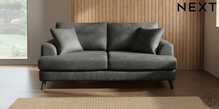 7.2.5 Buy Parker 3 Seater Sofa Plush Chenille Dark Grey Low Retro Tapered - Mid from the Next UK online shop Click here to use our accessible website