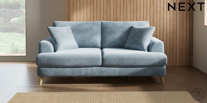 7.2.6 Buy Parker 3 Seater Sofa Plush Chenille Light Blue Low Retro Tapered - Light from the Next UK online shop Click here to use our accessible website