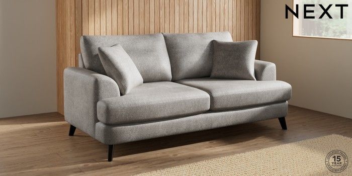 7.2.10 Buy Parker 3 Seater Sofa Plush Chenille Light Grey Low Retro Tapered - Dark from the Next UK online shop Click here to use our accessible website