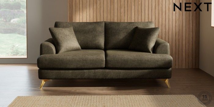 7.2.5 Buy Parker 3 Seater Sofa Plush Chenille Moss Green High Metal - Brass from the Next UK online shop Click here to use our accessible website