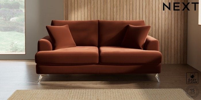 7.2.5 Buy Parker 3 Seater Sofa Plush Velvet Easy Clean Ginger Orange High Metal - Chrome from the Next UK online shop Click here to use our accessible website