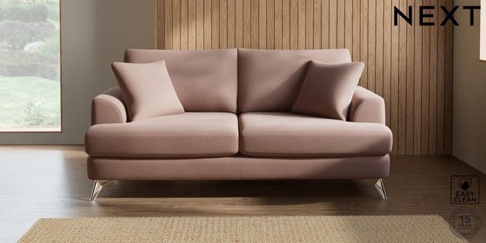 7.2.5 Buy Parker 3 Seater Sofa Plush Velvet Easy Clean Mid Natural High Metal - Chrome from the Next UK online shop Click here to use our accessible website