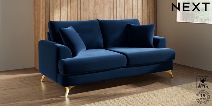 7.3.1 Buy Parker 3 Seater Sofa Plush Velvet Easy Clean Navy Blue High Metal - Brass from the Next UK online shop Click here to use our accessible website