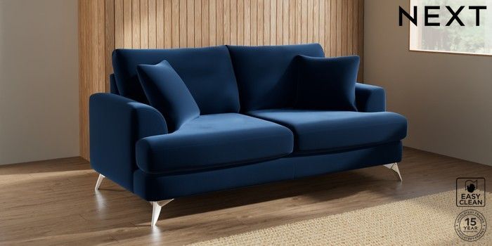 7.3.1 Buy Parker 3 Seater Sofa Plush Velvet Easy Clean Navy Blue High Metal - Chrome from the Next UK online shop Click here to use our accessible website