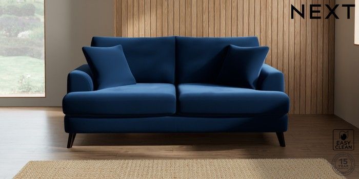 7.0.3 Buy Parker 3 Seater Sofa Plush Velvet Easy Clean Navy Blue Low Retro Tapered - Dark from the Next UK online shop Click here to use our accessible website