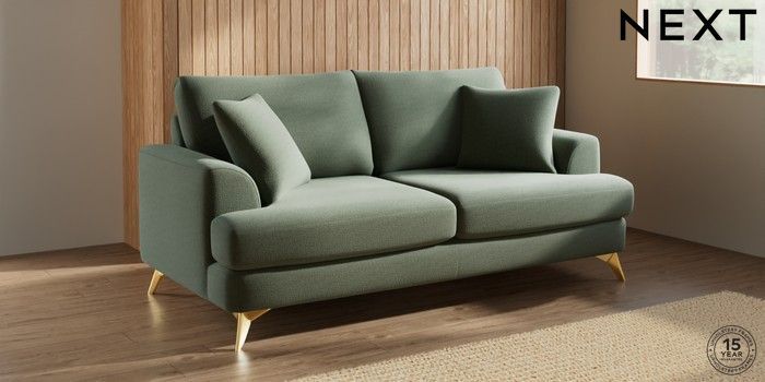 7.3.1 Buy Parker 3 Seater Sofa Relaxed Linen Look Dark Green High Metal - Brass from the Next UK online shop Click here to use our accessible website