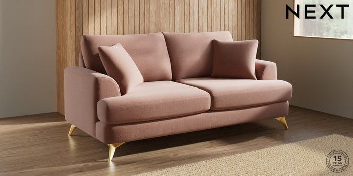 7.2.10 Buy Parker 3 Seater Sofa Relaxed Linen Look Light Rust Brown High Metal - Brass from the Next UK online shop Click here to use our accessible website