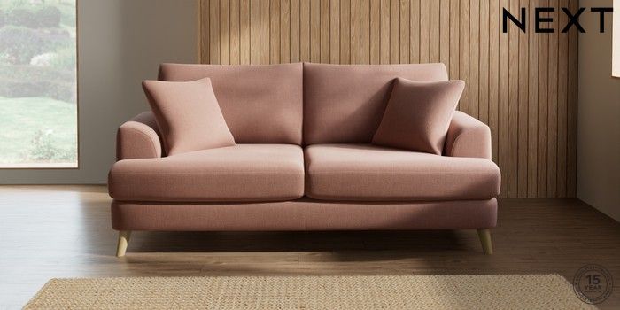 7.2.5 Buy Parker 3 Seater Sofa Relaxed Linen Look Light Rust Brown Low Retro Tapered - Light from the Next UK online shop Click here to use our accessible website
