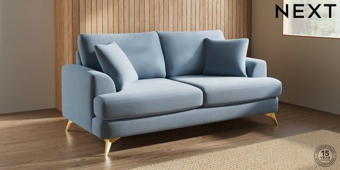 7.3.1 Buy Parker 3 Seater Sofa Relaxed Linen Look Mid Blue High Metal - Brass from the Next UK online shop Click here to use our accessible website
