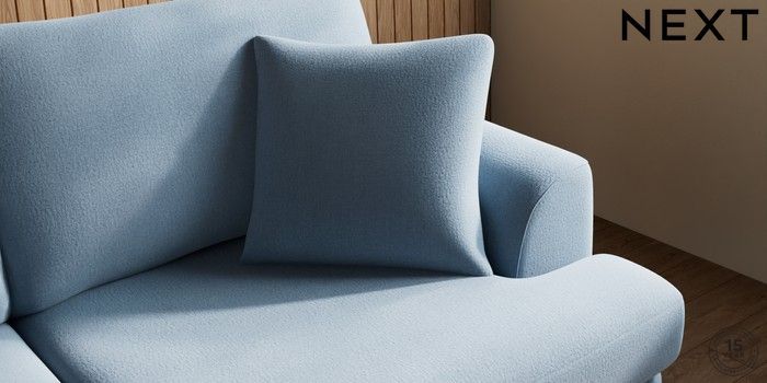 7.2.10 Buy Parker 3 Seater Sofa Relaxed Linen Look Mid Blue High Metal - Chrome from the Next UK online shop Click here to use our accessible website