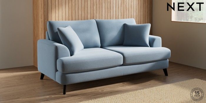 7.3.1 Buy Parker 3 Seater Sofa Relaxed Linen Look Mid Blue Low Retro Tapered - Dark from the Next UK online shop Click here to use our accessible website