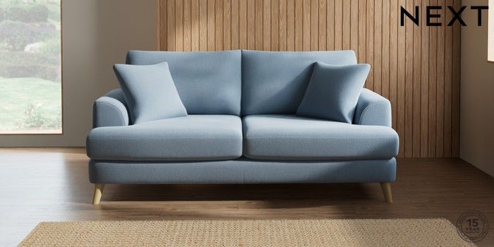 7.2.5 Buy Parker 3 Seater Sofa Relaxed Linen Look Mid Blue Low Retro Tapered - Light from the Next UK online shop Click here to use our accessible website