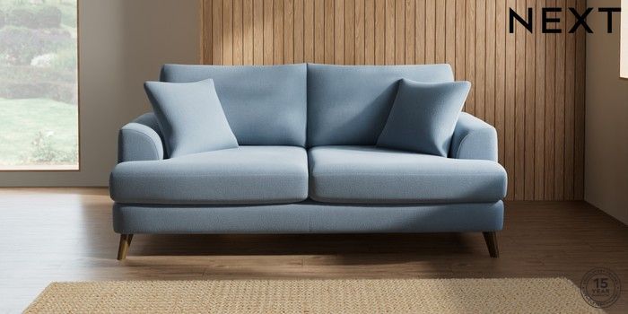 7.2.5 Buy Parker 3 Seater Sofa Relaxed Linen Look Mid Blue Low Retro Tapered - Mid from the Next UK online shop Click here to use our accessible website